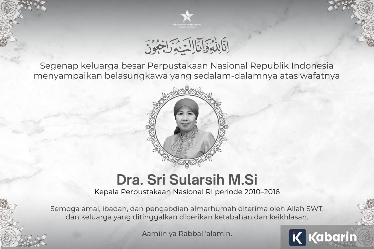 Jakarta (KABARIN) - Perpusnas menyampaikan duka mendalam atas wafatnya Sri Sularsih yang pernah memimpin lembaga itu selama periode 2010 sampai 2016. Beliau meninggal pada Minggu kemarin pukul 15.15 WIB dan kepergiannya meninggalkan jejak besar bagi dunia literasi tanah air.