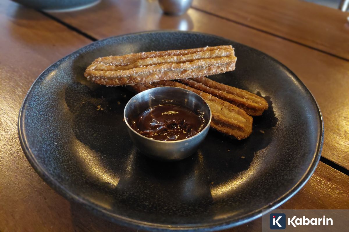 - Churros siap dinikmati bersama cokelat leleh.