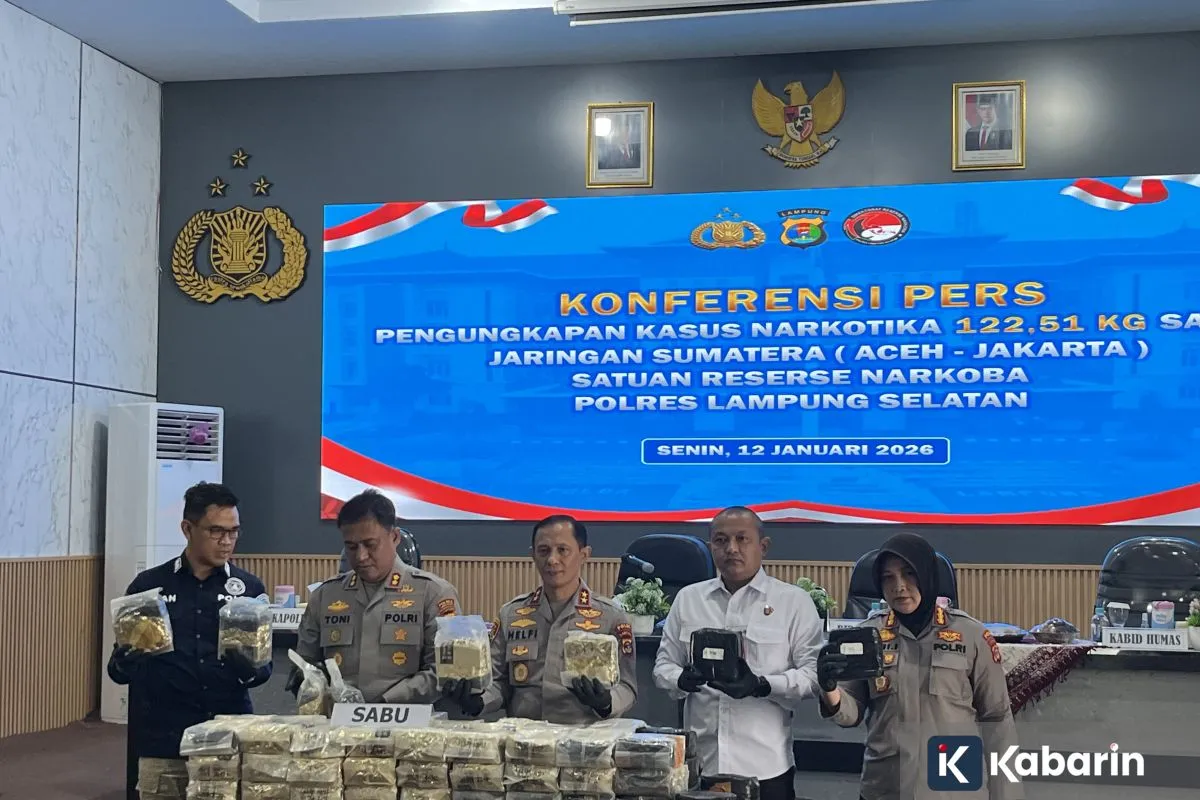 “Anggota Reserse Narkoba Polres Lampung Selatan telah melakukan penangkapan dan penyitaan narkotika jenis sabu seberat 122,515 kg di Seaport Interdiction Pelabuhan Bakauheni pada pada Sabtu tanggal 27 Desember 2025 sekitar pukul 21.00 WIB,” kata Helfi saat konferensi pers di Polres Lampung Selatan, Senin.