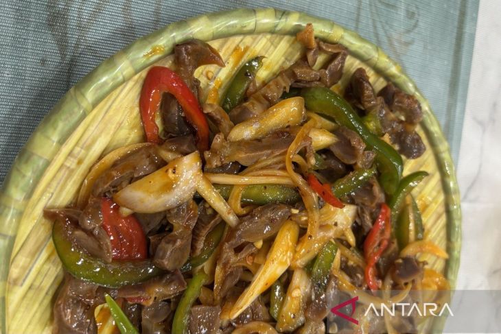 Tumis ampela ayam pedas mala. ANTARA/ (Sinta Ambar)