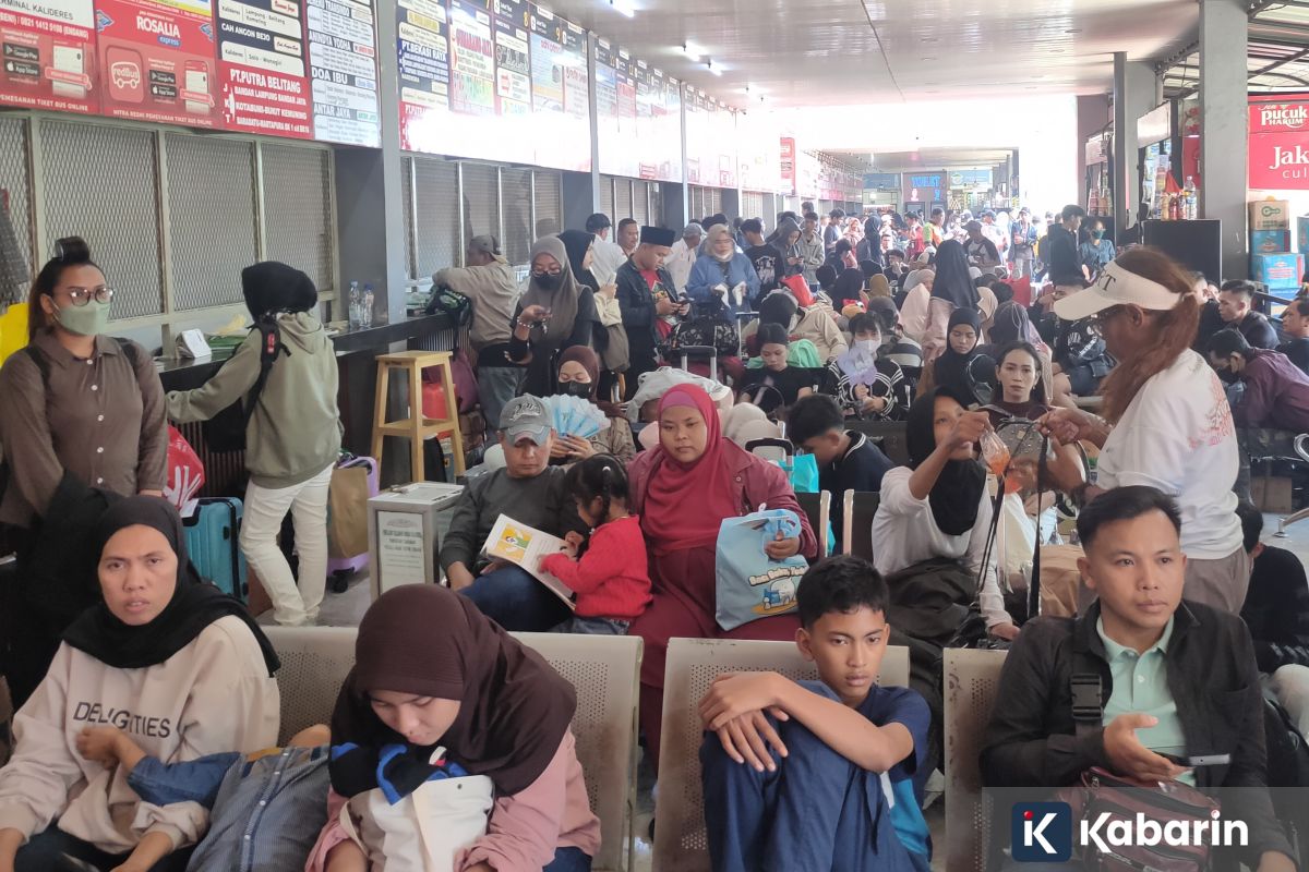 Pantauan di lokasi sekitar pukul 13.00 WIB menunjukkan area tunggu dipenuhi penumpang. Antrean terlihat di depan loket pembelian tiket, sementara kursi ruang tunggu tak lagi cukup menampung banyaknya orang. Alhasil, sebagian penumpang harus berdiri atau duduk di sudut-sudut terminal sambil menunggu jadwal keberangkatan.