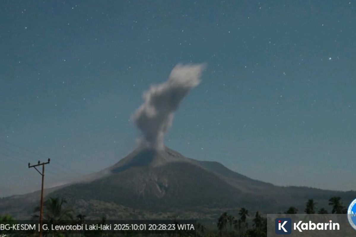 “Erupsi terjadi pada 1 Oktober 2025 pukul 20.26 Wita dengan tinggi kolom abu sekitar 1.500 meter di atas puncak atau sekitar 3.084 meter di atas permukaan laut,” kata Emanuel Rofinus Bere, petugas Pos PGA Gunung Lewotobi Laki-laki, dalam laporan tertulis yang diterima di Labuan Bajo, Rabu.