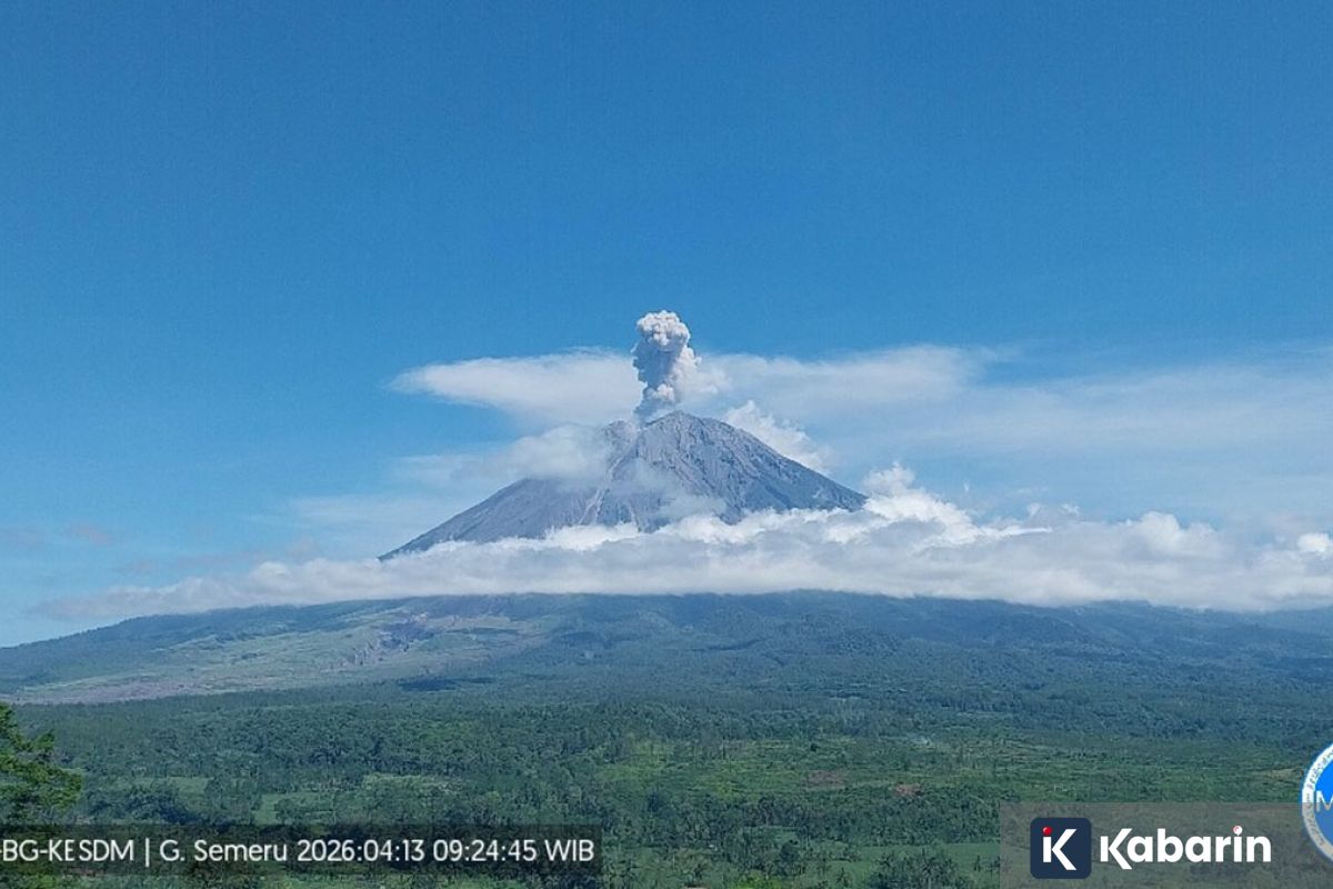 Terjadi erupsi Gunung Semeru pada pukul 09.23 WIB dengan tinggi kolom letusan teramati sekitar 1.000 meter di atas puncak atau 4.676 meter di atas permukaan laut (mdpl)