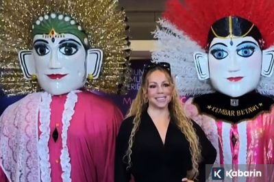 Mariah Carey disambut pertunjukan ondel-ondel waktu sampe di Jakarta